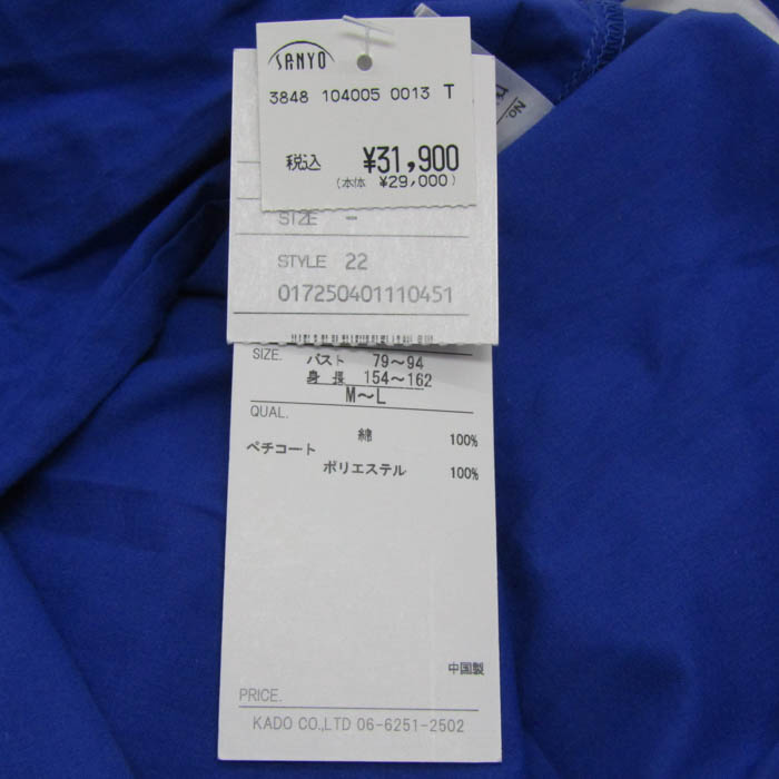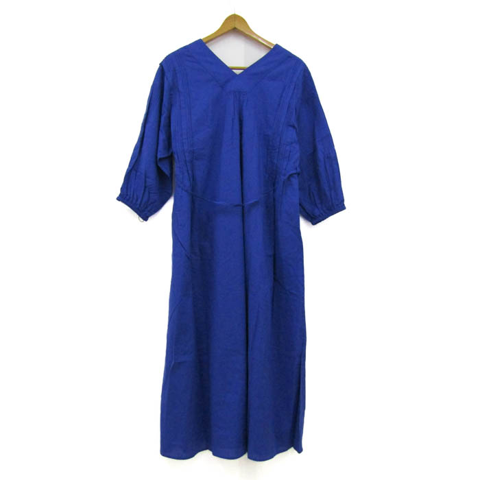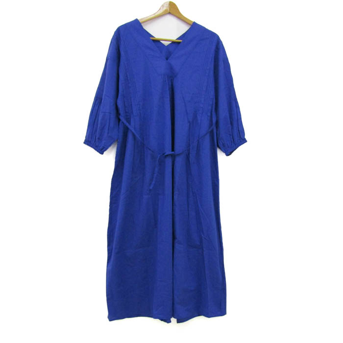 リョウコキクチ ロングワンピース トップス 長袖 Vネック 未使用品 レディース M-Lサイズ ブルー R.KIKUCHI 【中古】