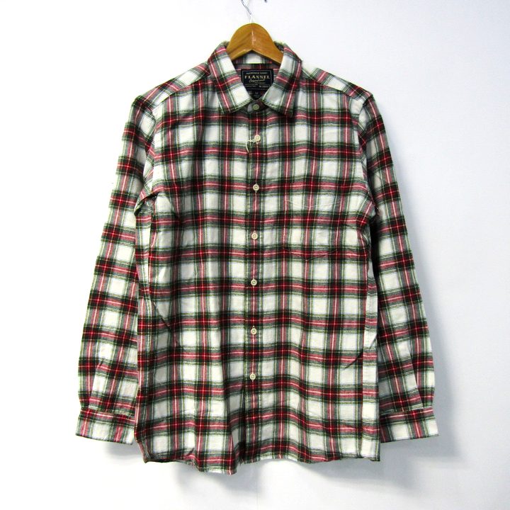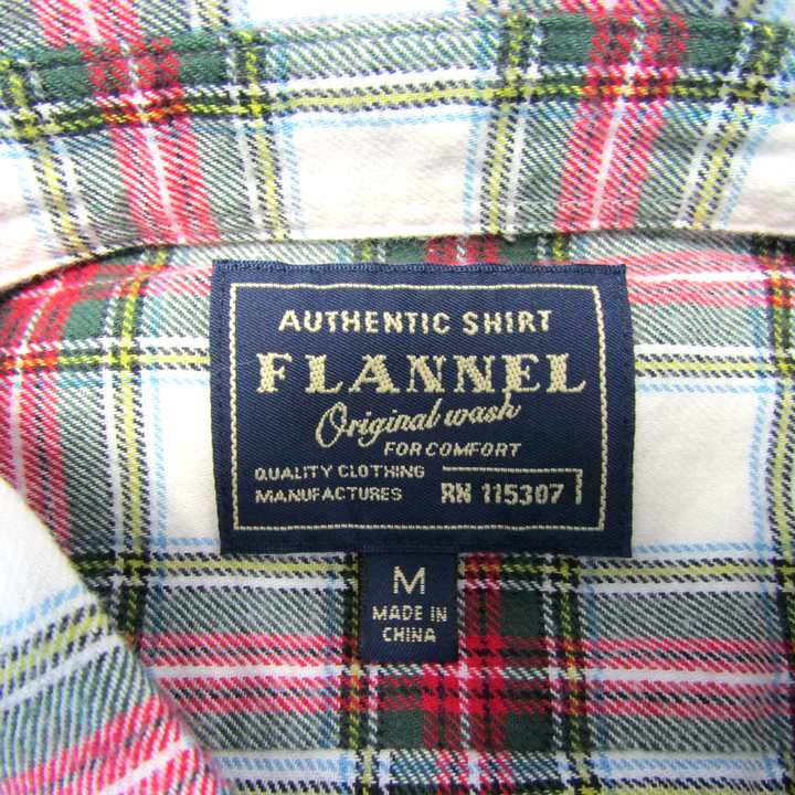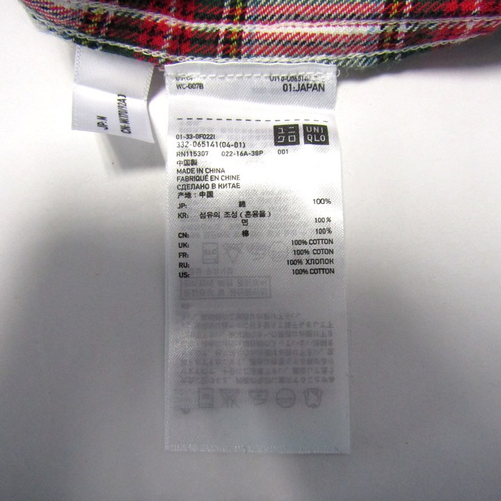 ユニクロ フランネルチェックシャツ 長袖 クラシック トップス メンズ Mサイズ レッド×グリーン×ホワイト UNIQLO 【中古】