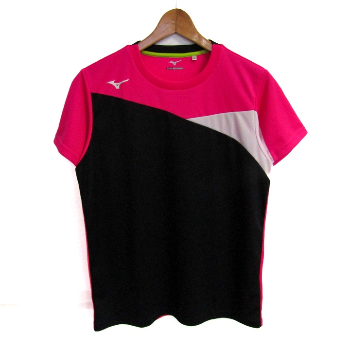 ミズノ 半袖Tシャツ クイックドライ スポーツウエア トップス レディース Sサイズ ピンク×ブラック×ホ...
