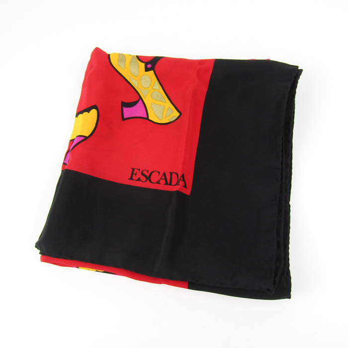 エスカーダ スカーフ ハイヒール シューズ柄 シルク イタリア製 ブランド 小物 レディース ブラック ESCADA 【中古】