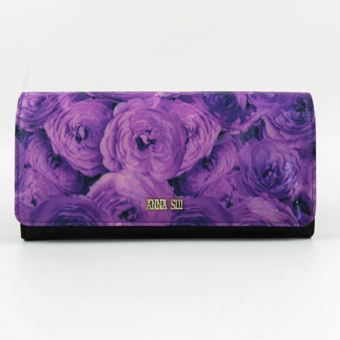 アナスイ 長財布 レザー 小銭入れ有り ウォレット ブランド レディース パープル×ブラック ANNA SUI 【...