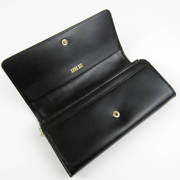アナスイ 長財布 レザー 小銭入れ有り ウォレット ブランド レディース パープル×ブラック ANNA SUI 【中古】