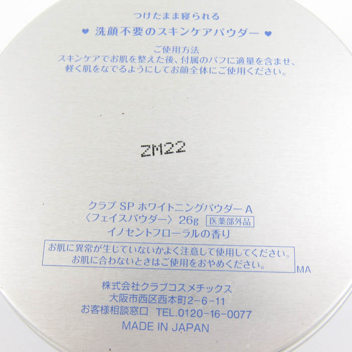 クラブ すっぴんパウダー ホワイトニングパウダー A フェイスパウダー 26g 若干使用 レディース Club 【...