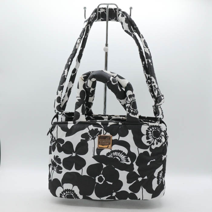 ボバロバ ショルダーバッグ 2way 花柄 ハンドバッグ 鞄 カバン ブランド レディース ホワイト×ブラック VOVAROVA 【中古】