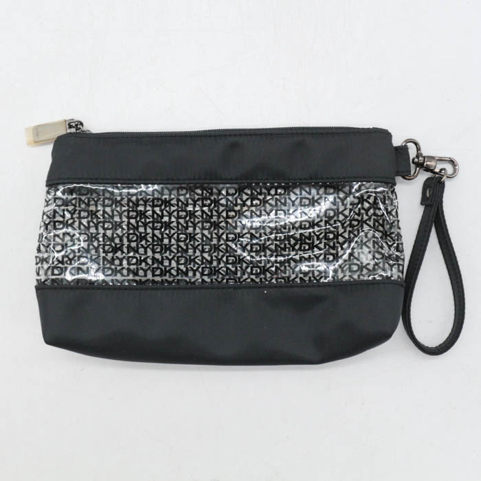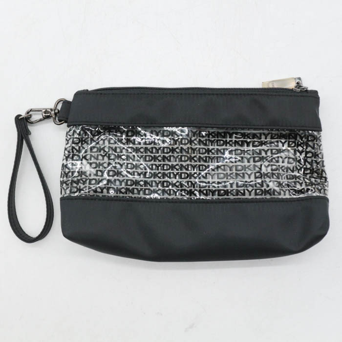 ダナキャラン ポーチ リストレット クリア ロゴ マルチケース ブランド 黒 レディース ブラック Donna Karan 【中古】