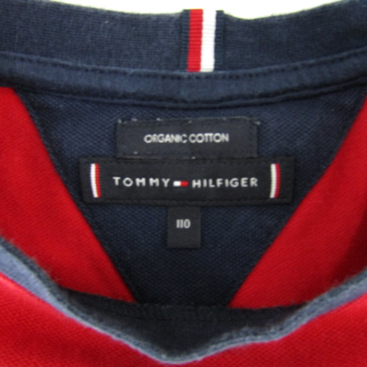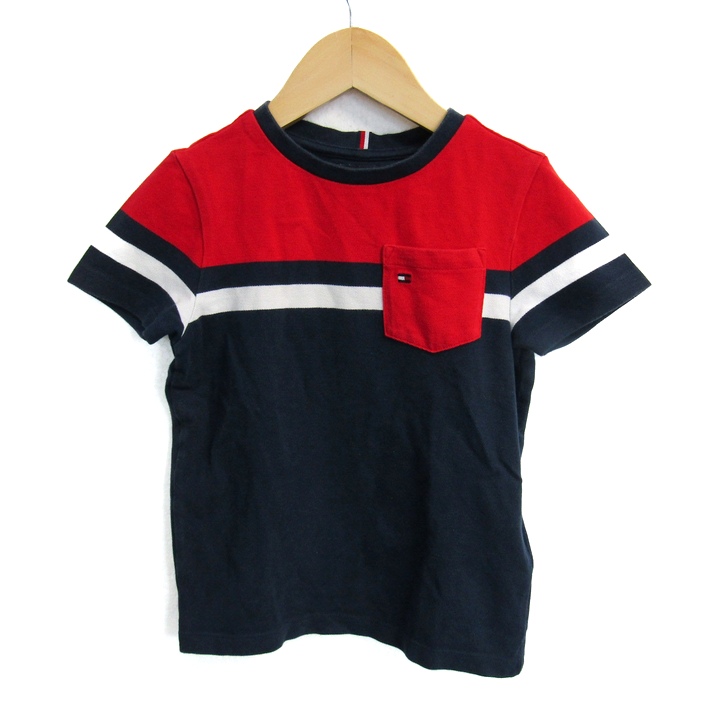 トミーヒルフィガー 半袖Tシャツ ストレッチ ブランド トップス キッズ 男の子用 110サイズ ネイビー×レッド TOMMY HILFIGER 【中古】