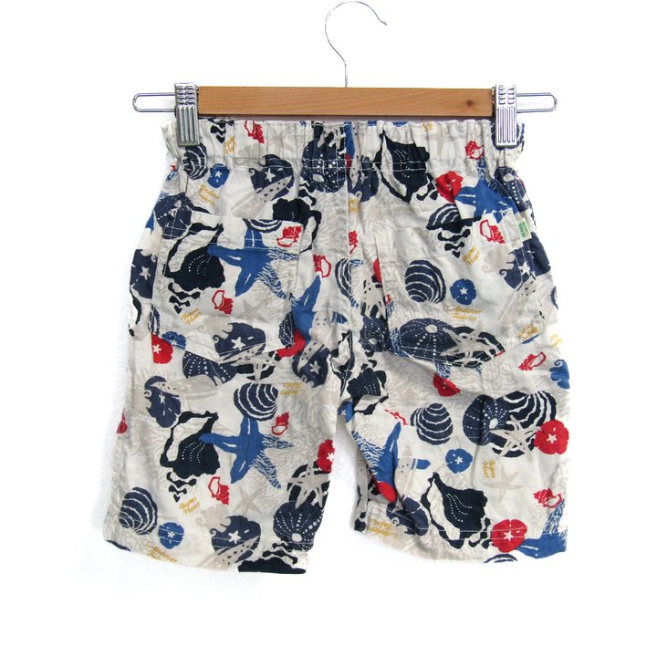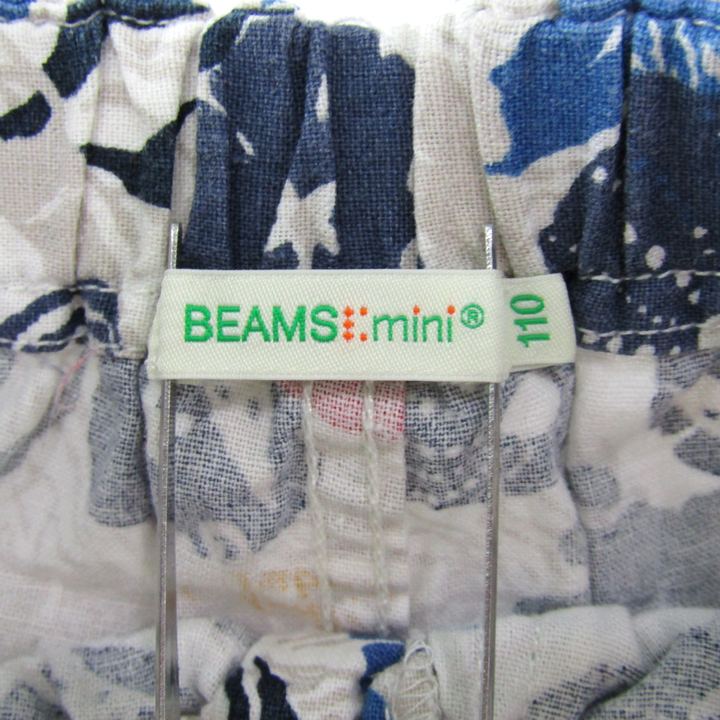 ビームスミニ ショートパンツ ハーフパンツ リネン混 ボトムス 白 キッズ 男の子用 110サイズ ホワイト×ネイビー BEAMSmini 【中古】