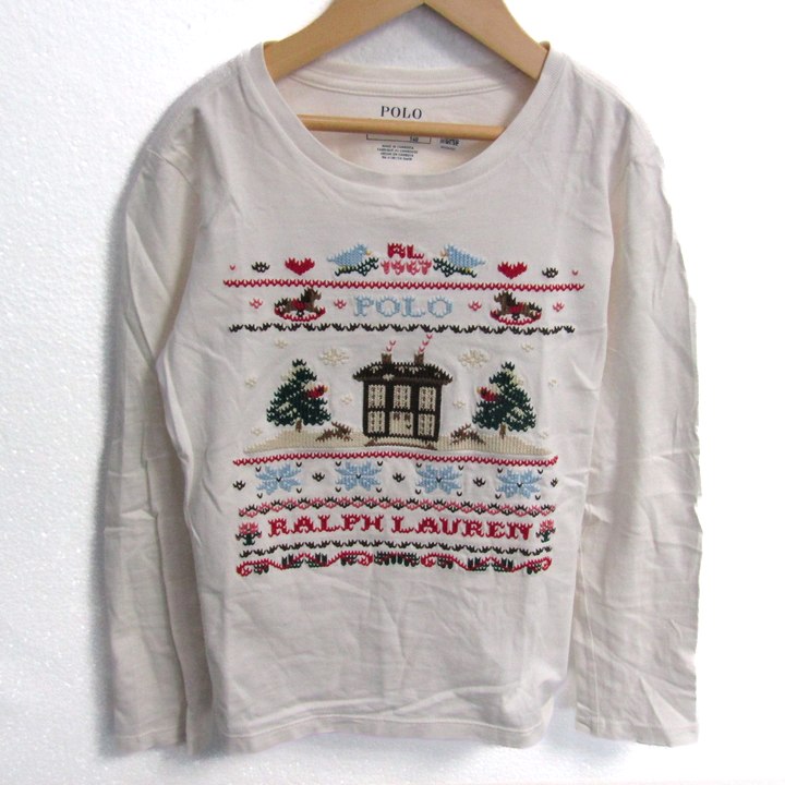 ポロラルフローレン 長袖Tシャツ コットン ブランド トップス 白 キッズ 女の子用 M(8-10)サイズ ホワ...