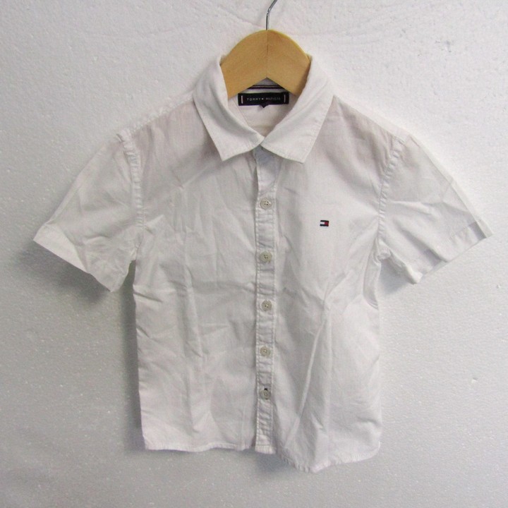 トミーヒルフィガー 半袖シャツ コットン100% ブランド トップス 白 キッズ 男の子用 110サイズ ホワイト TOMMY HILFIGER 【中古】