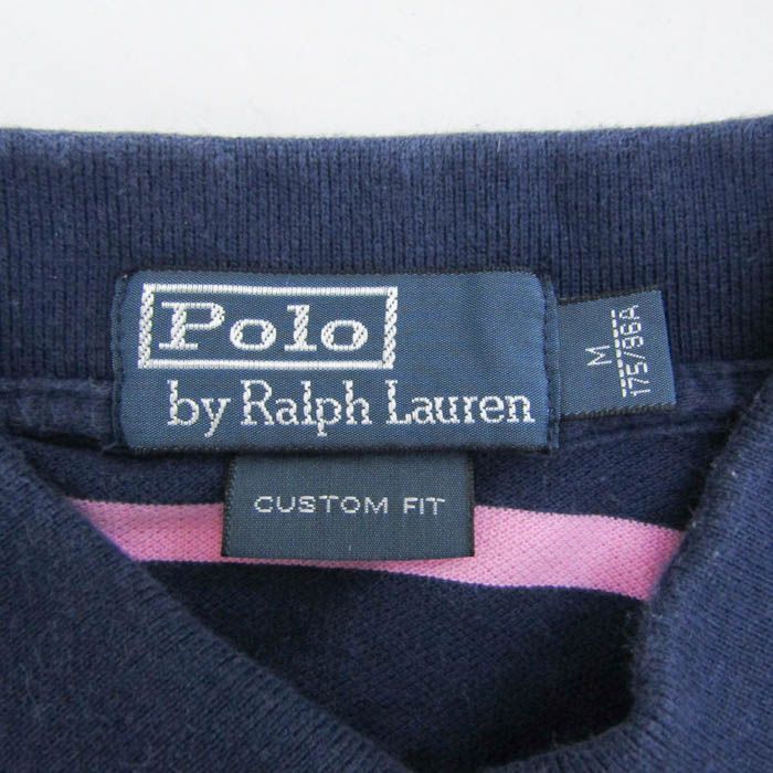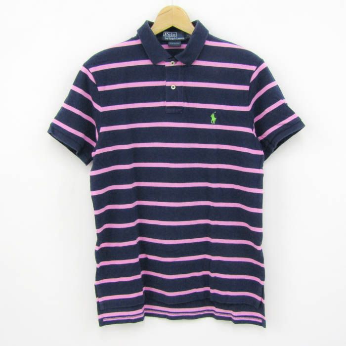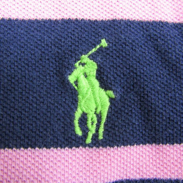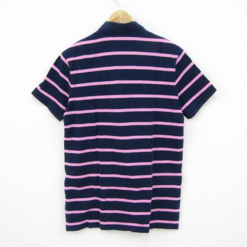 Polo by Ralph Lauren ボーダー半袖ポロシャツ スモールポニー ロゴ刺繍 サイズM ネイビー×ピンク A00126