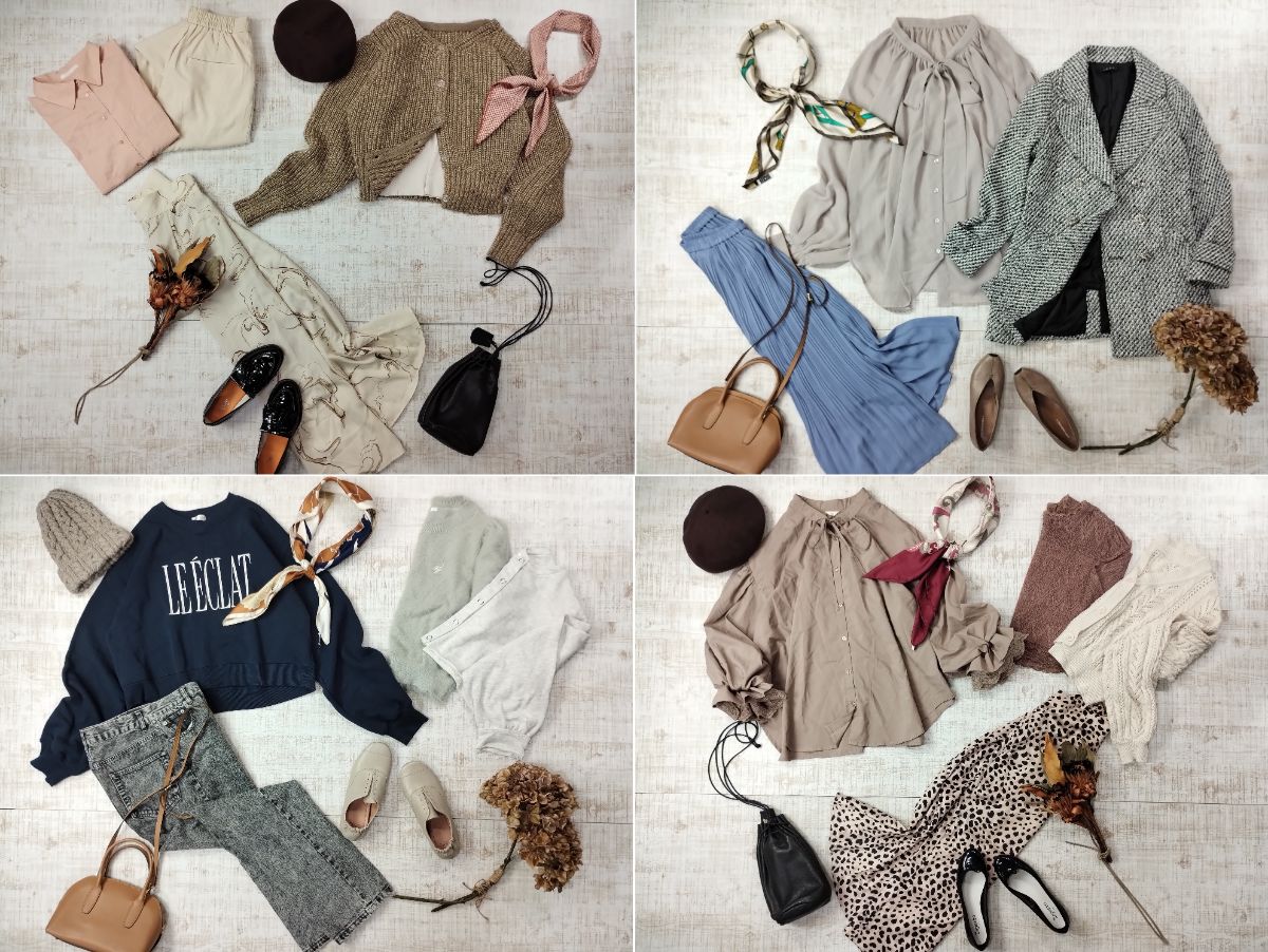 の秋や冬に着られそうなお洋服が入ります。また、洋服のほかに小物が入る場合がございます。*サイズはS、M、Lがメインとなります。そのほかのサイズも入っている場合がございます。サイズ表記がないものは見た目、着用感でレディースと判断しております。