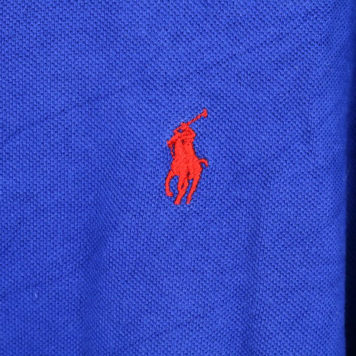 ポロ・ラルフローレン 長袖ポロシャツ ポニー刺繍 鹿の子 無地 アメリカ買付品 海外古着 メンズ XXLサイズ ブルー POLO RALPH LAUREN 【中古】