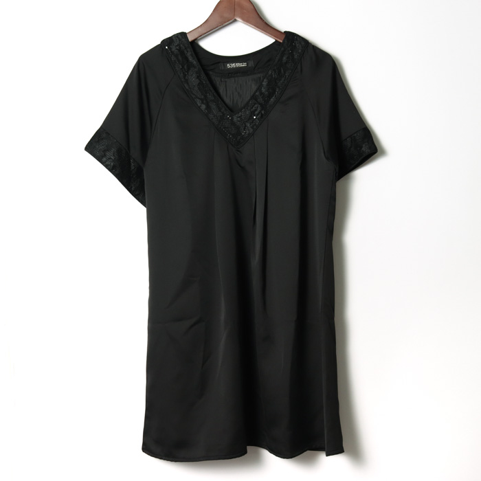 ゴーサンゴーイチプーラファム 半袖Tシャツ Vネック 異素材切り替え M相当 レディース フリーサイズ ブラ...