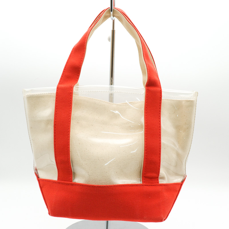 シップス クリアトートバッグ キャンバスポーチ付 ハンドバッグ ブランド 鞄 オレンジ×キナリ レディース ベージュ SHIPS 【中古】