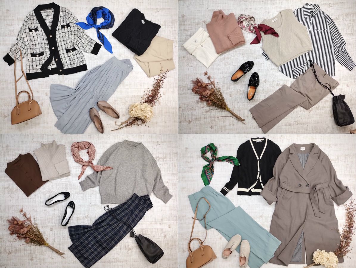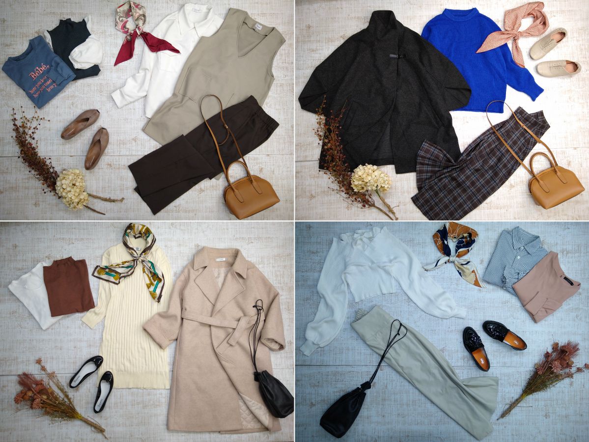 の秋口や冬に着られそうなお洋服が入ります。また、洋服のほかに小物が入る場合がございます。