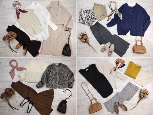 の秋口や冬に着られそうなお洋服が入ります。また、洋服のほかに小物が入る場合がございます。