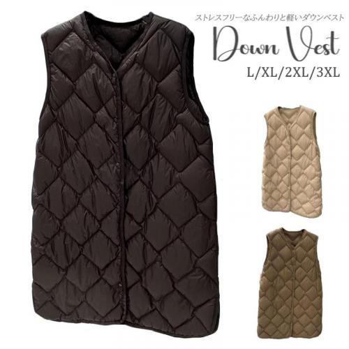 ■コメント・ストレスフリーなふんわりと軽いダウンベスト。・気軽に羽織れて暖かな着心地。・広めのVネックなので、インナーにフードつきパーカーやタートルネックなどとのレイヤードコーデ雰囲気の変化を楽しめます。・軽くて保温性のある中綿入りで保温性に優れ、しっかり身体を包み込んでくれます。・アームホールが広めなので中に厚手のものも着用できます。■サイズ(単位:約cm)L 総丈94 バスト106XL 総丈95 バスト1102XL 総丈96 バスト1163XL 総丈97 バスト122※採寸方法違いより、多少の誤差がございますので、ご了承ください。■伸縮性なし■表地ポリエステル100% 本体中綿:ダウン50%、ポリエステル50%■裏地ポリエステル100%■生地の厚さ普通■透け感なし■素材ポリエステル100%■包装状況OPP袋■生産国中国