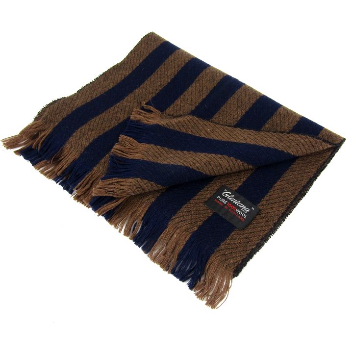 グレンタナ マフラー ストライプ柄 ウール100% フリンジ ブランド 小物 メンズ カーキ Glentana 【中古】