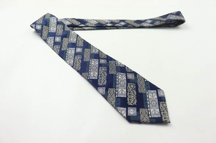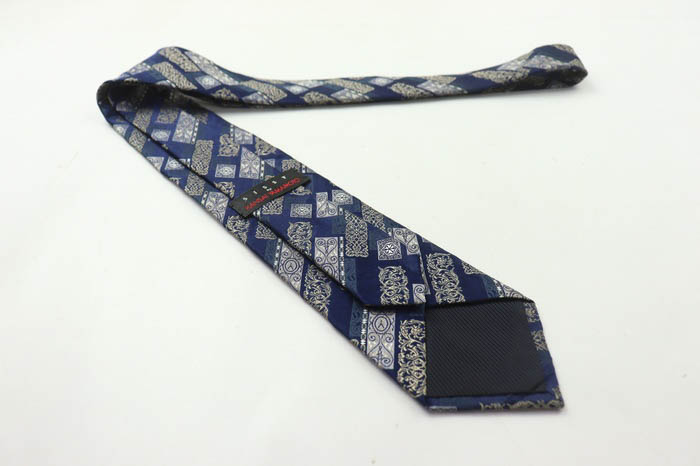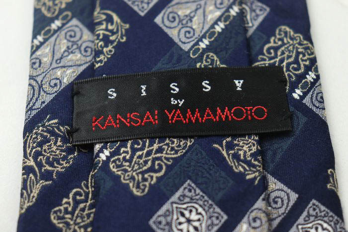 カンサイヤマモト ブランド ネクタイ シルク 小紋柄 チェック柄 シシイ メンズ ネイビー KANSAI YAMAMOTO 【中古】