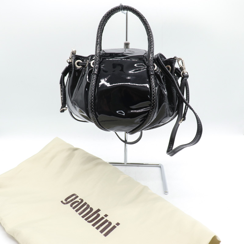 ガンビー二 ショルダーバッグ ハンドバッグ 2way エナメル イタリア製 ブランド 斜め掛け 鞄 黒 レディース ブラック gambini 【中古】