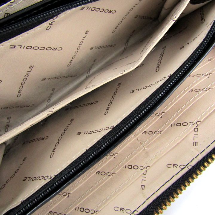 クロコダイル 長財布 総柄 キャンバス ラウンドファスナー 小銭入れあり ブランド ウォレット レディース ブラック CROCODILE 【中古】
