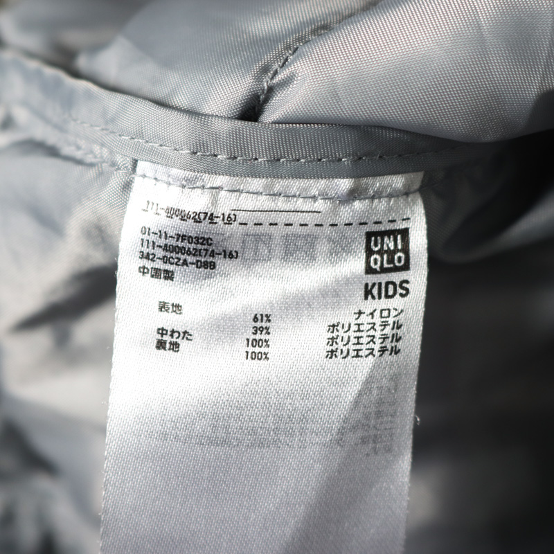 ユニクロ ナイロンジャケット 中綿入り ジャンパー アウター キッズ 男の子用 110サイズ グレー UNIQLO ...