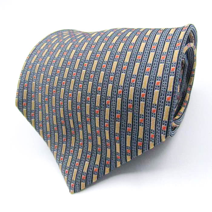 トラサルディ ブランドネクタイ ドット バーチカルストライプ シルク イタリア製 未使用タグ付 メンズ ネイビー TRUSSARDI 【中古】