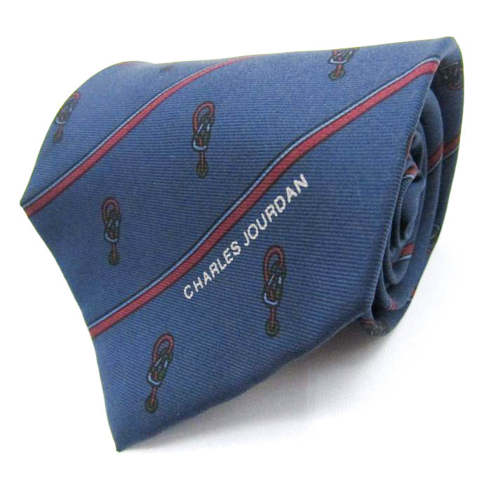 シャルル・ジョルダン ブランド ネクタイ シルク ストライプ柄 総柄 メンズ ネイビー CHARLES JOURDAN 【中古】