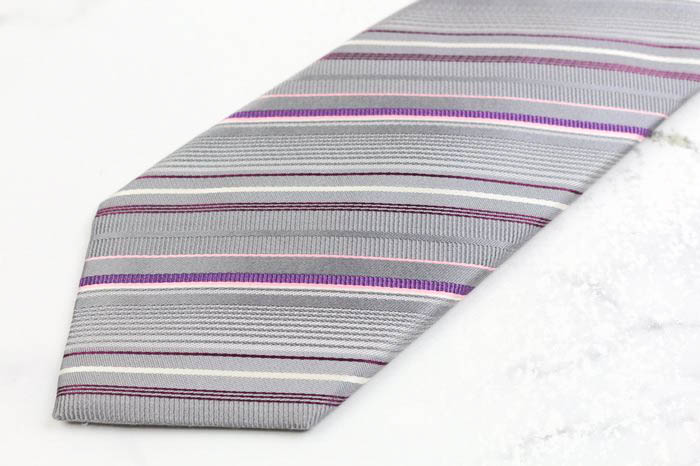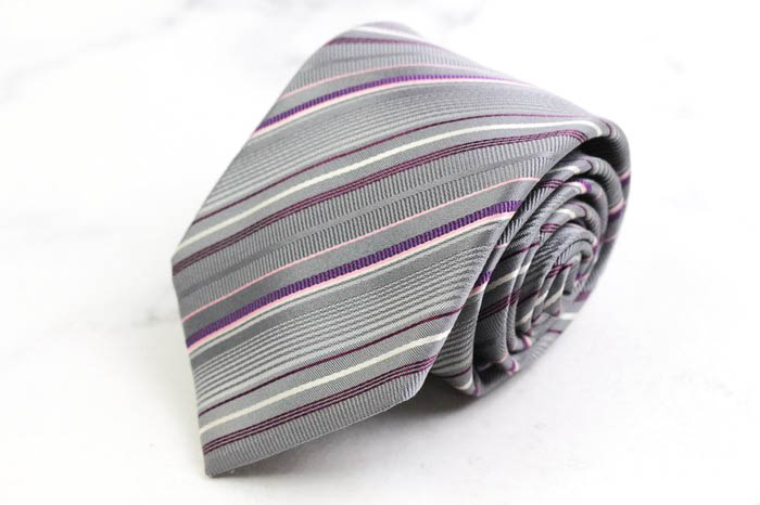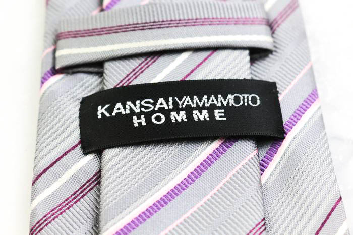 ヤマモトカンサイ ブランド ネクタイ シルク ストライプ柄 メンズ グレー KANSAI(山本寛斎) 【中古】