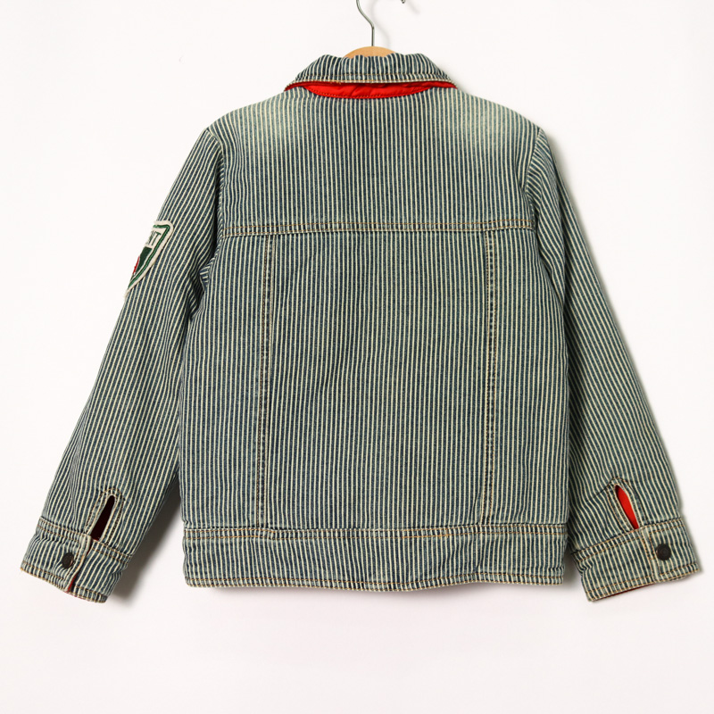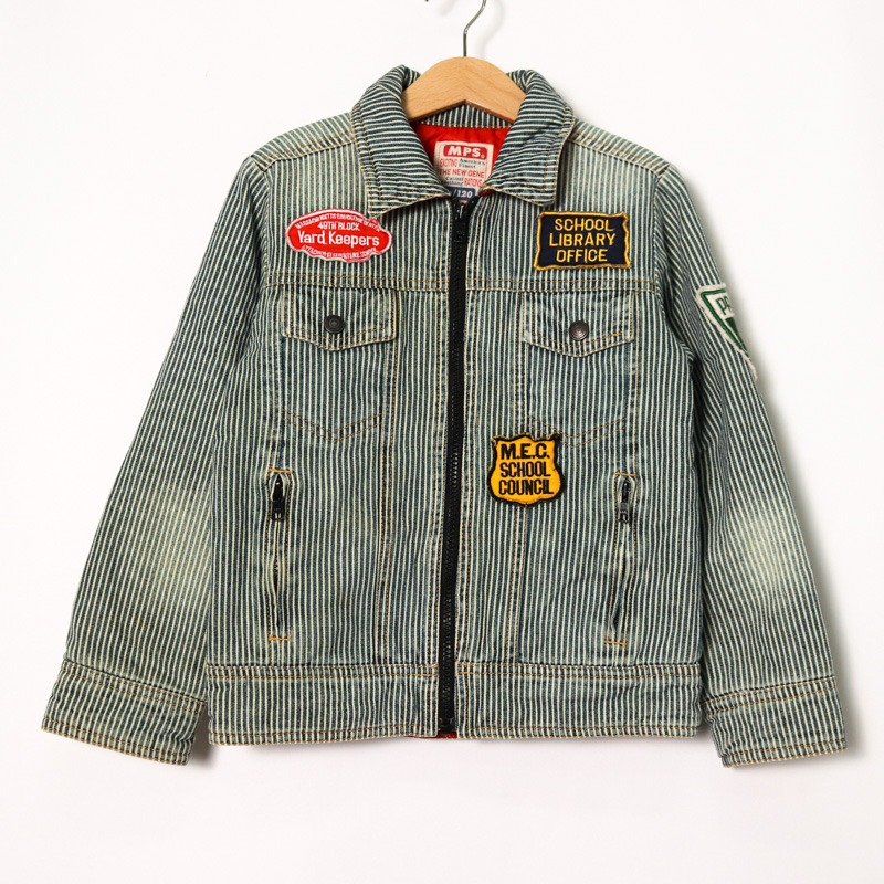 エムピーエス デニムジャケット ヒッコリー ジップアップ アウター キッズ 男の子用 120サイズ ネイビー×ホワイト MPS 【中古】
