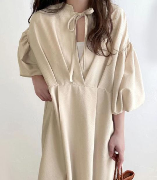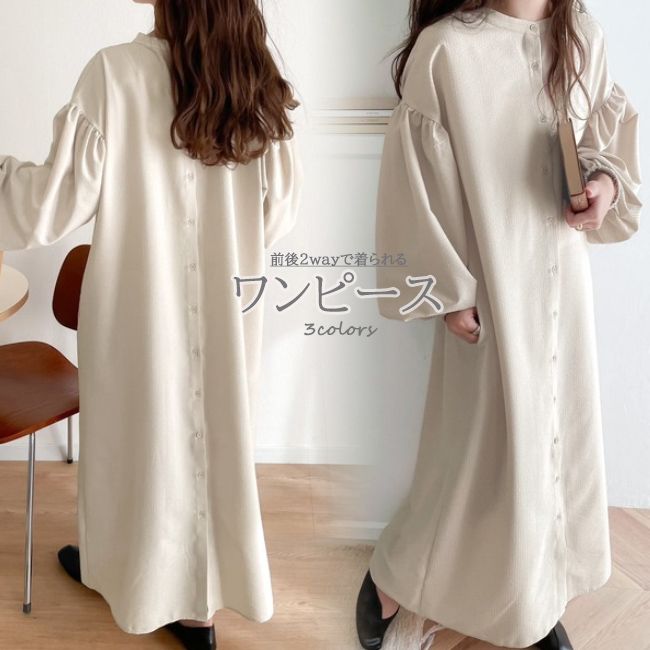 ■コメント・前後を反対にして着るだけでコーデの印象を変えられるワンピース。・肌ざわりが良くサラッと着られます。・大人フェミニンな雰囲気を演出するリボン。・ボリュームスリーブで二の腕を可愛くカバーしてくれます。・ボディラインを拾いにくいです。・窮屈感がなくリラクシーな着心地。・お出かけやショッピング、通勤にも大活躍。■サイズ(単位:約cm)ワンサイズ(Mサイズ相当) 身幅55 総丈125 そで丈52■カラー画像に記載■伸縮性なし■裏地なし■生地の厚さ普通■透け感なし■素材ポリエステル100%■生産国中国