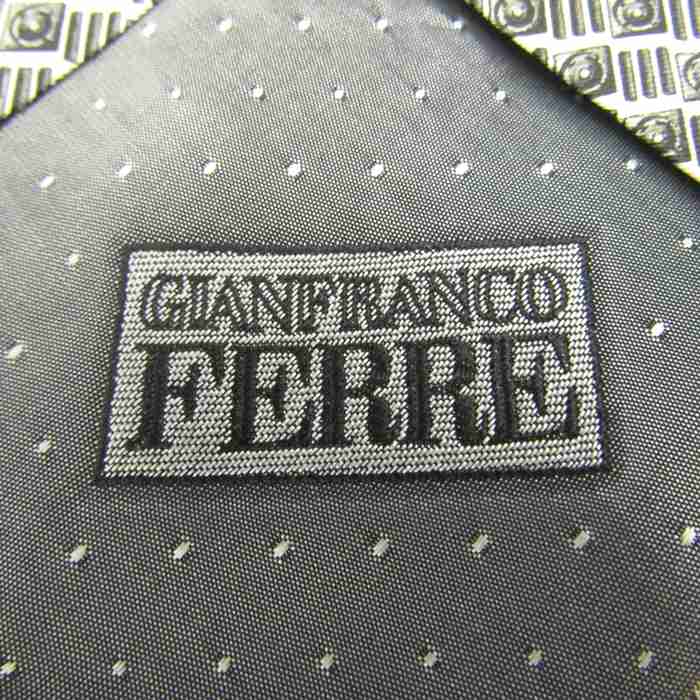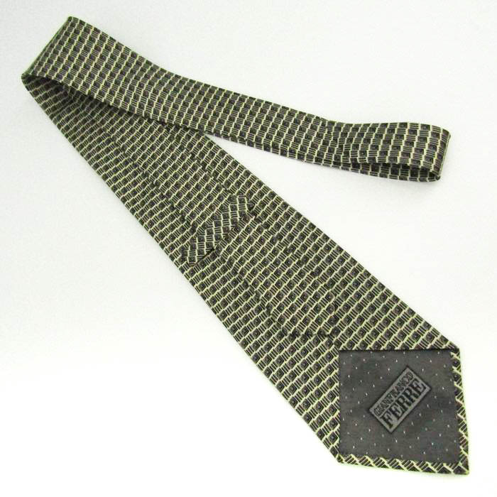 ジャンフランコフェレ ブランド ネクタイ シルク ボーダー柄 ドット柄 伊製生地 メンズ カーキ GIANFRANCO FERRE 【中古】