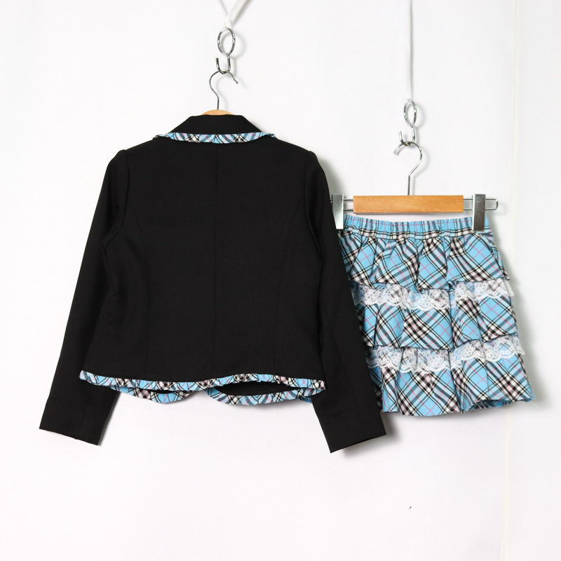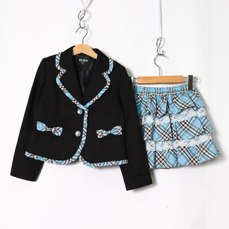 ブリングジュエル スーツ 上下セットアップ ジャケット スカートフォーマル キッズ 女の子用 130Aサイズ ブラック×ブルー BLING JEWEL 【中古】