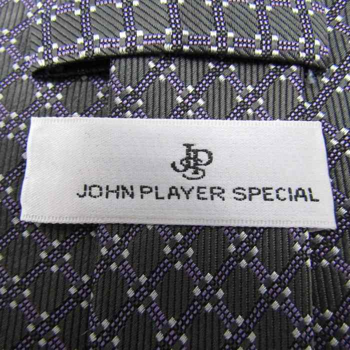 ジョンプレイヤースペシャル ブランド ネクタイ シルク 格子柄 小紋柄 メンズ グレー John Player Special JPS 【中古】