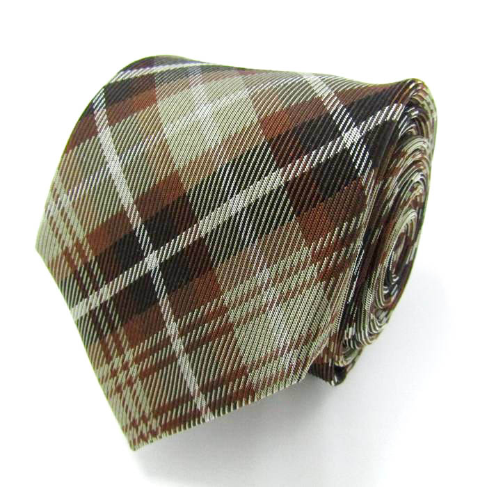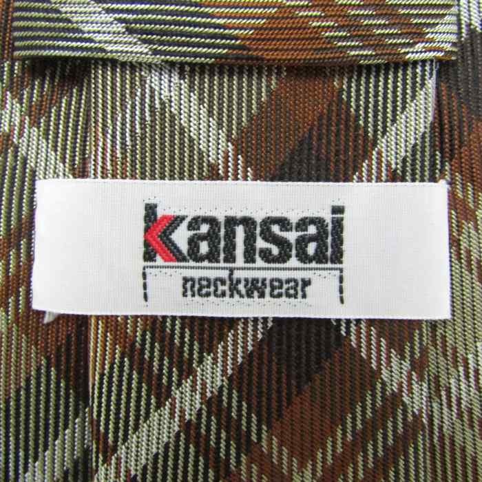 カンサイ ブランド ネクタイ シルク チェック柄 格子柄 メンズ グレー KANSAI 【中古】