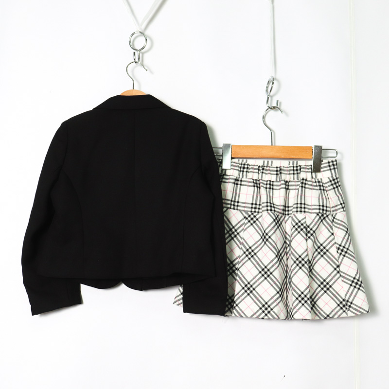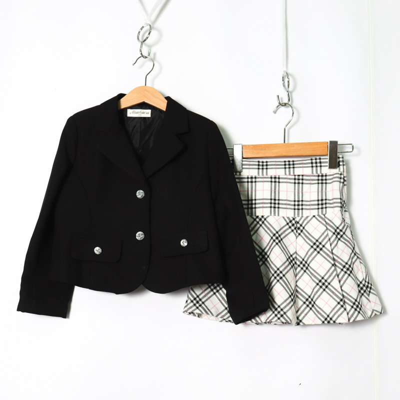ミアチャクラ スーツ ジャケット プリーツスカート チェック柄 フォーマル 卒入園式 キッズ 女の子用 130サイズ ブラック Miachacra 【中古】