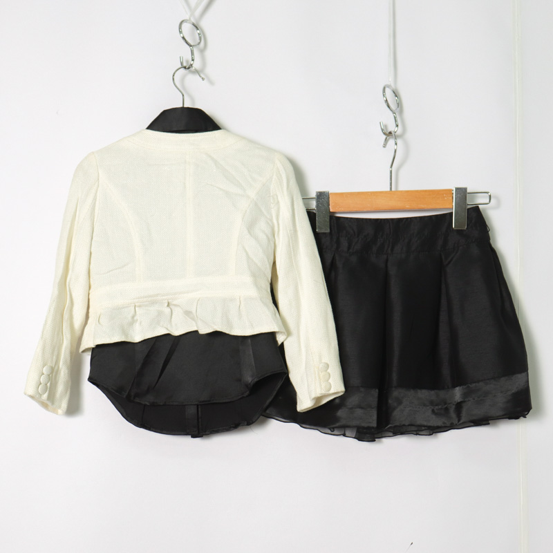 ファースト スーツ セットアップ ジャケット スカート ブラウス フォーマル キッズ 女の子用 S(100-110)サイズ 白×黒 First 【中古】