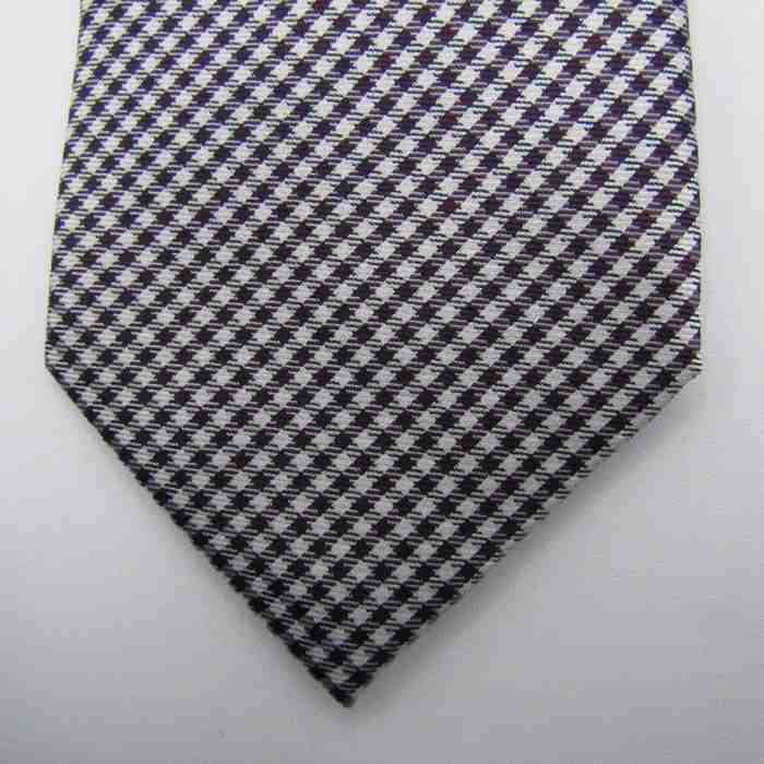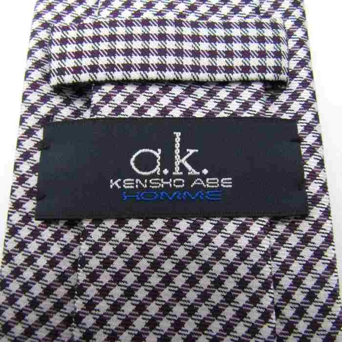 ケンショウアベ ブランドネクタイ チェック柄 格子柄 シルク メンズ ホワイト KENSHO ABE 【中古】