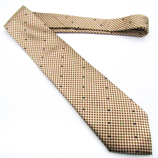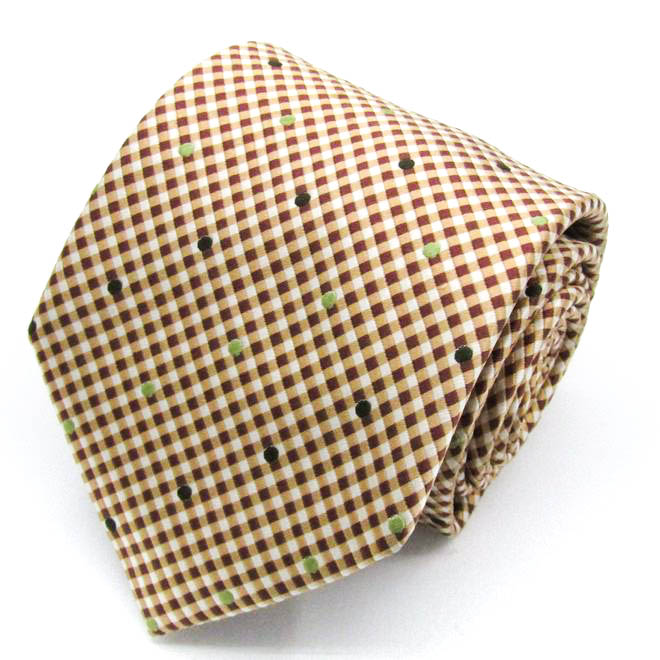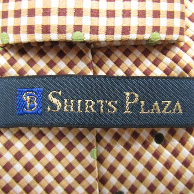 シャツプラザ ブランド ネクタイ シルク チェック柄 小紋柄 東京シャツ メンズ ブラウン SHIRTS PLAZA 【中古】