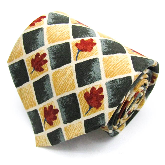 タイラック ブランド ネクタイ シルク チェック柄 花柄 伊製生地 ワイドタイ メンズ イエロー Tie Rack ...
