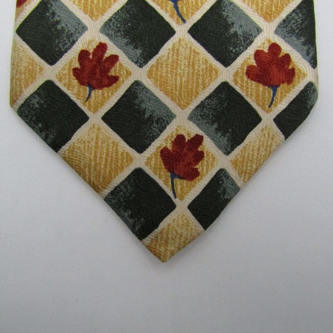 タイラック ブランド ネクタイ シルク チェック柄 花柄 伊製生地 ワイドタイ メンズ イエロー Tie Rack 【中古】