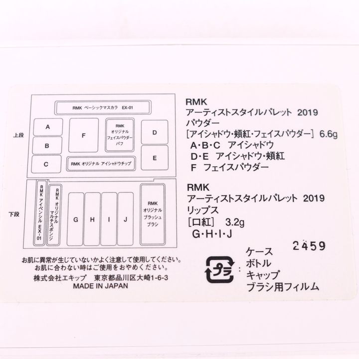 アールエムケー アーティストスタイルパレット 2019 アイシャドウ/頬紅他 残半量以上 マスカラ無し レディース RMK 【中古】
