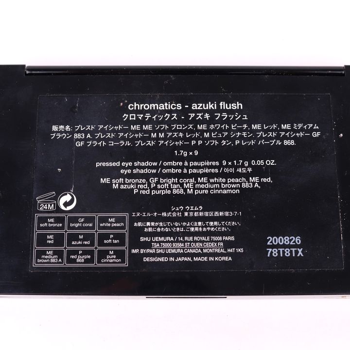 シュウウエムラ アイシャドウパレット クロマティックス アズキ フラッシュ 残半量以上 レディース 1.7g×9サイズ shu uemura 【中古】