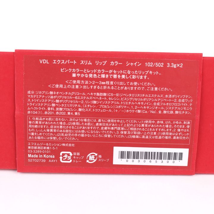 ヴィ・ディー・エル リップキット エクスパートスリム リップカラーシャイン 未使用 コスメ レディース 3.3g×2サイズ VDL 【中古】