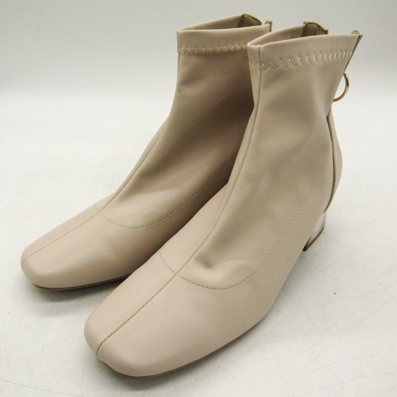 アーヴェーヴェー ショートブーツ スクエアトゥ チャンキーヒール ブランド シューズ 靴 レディース Mサイズ ベージュ a.v.v 【中古】