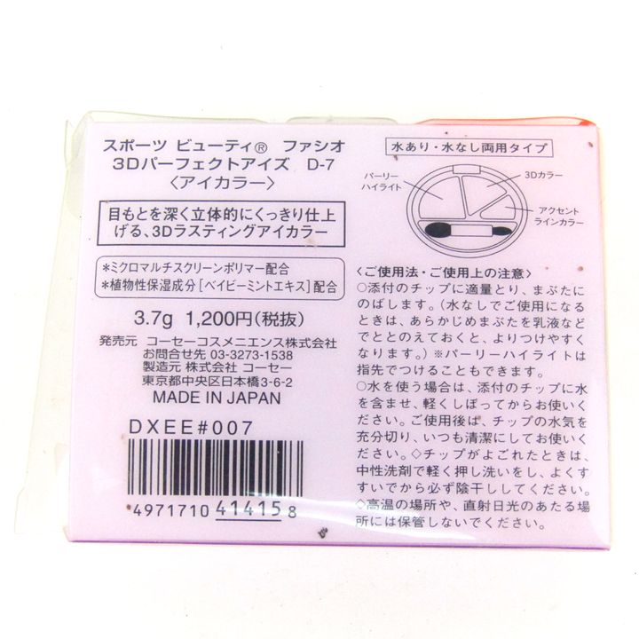 コーセー アイシャドウ ファシオ スポーツビューティ 3Dパーフェクトアイズ D-7 若干使用 チップ無 レディース 3.7gサイズ KOSE 【中古】
